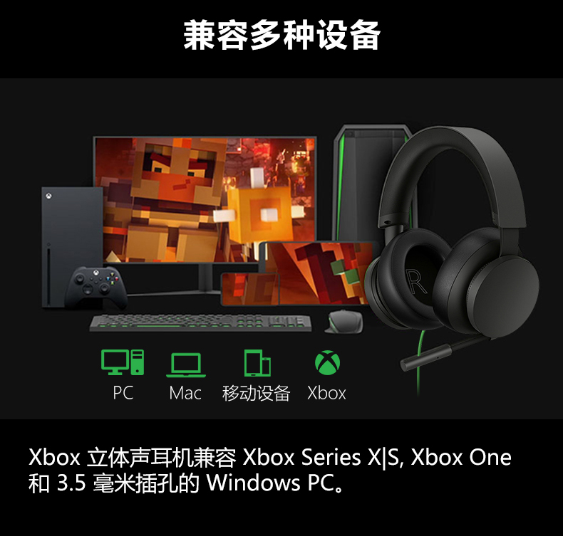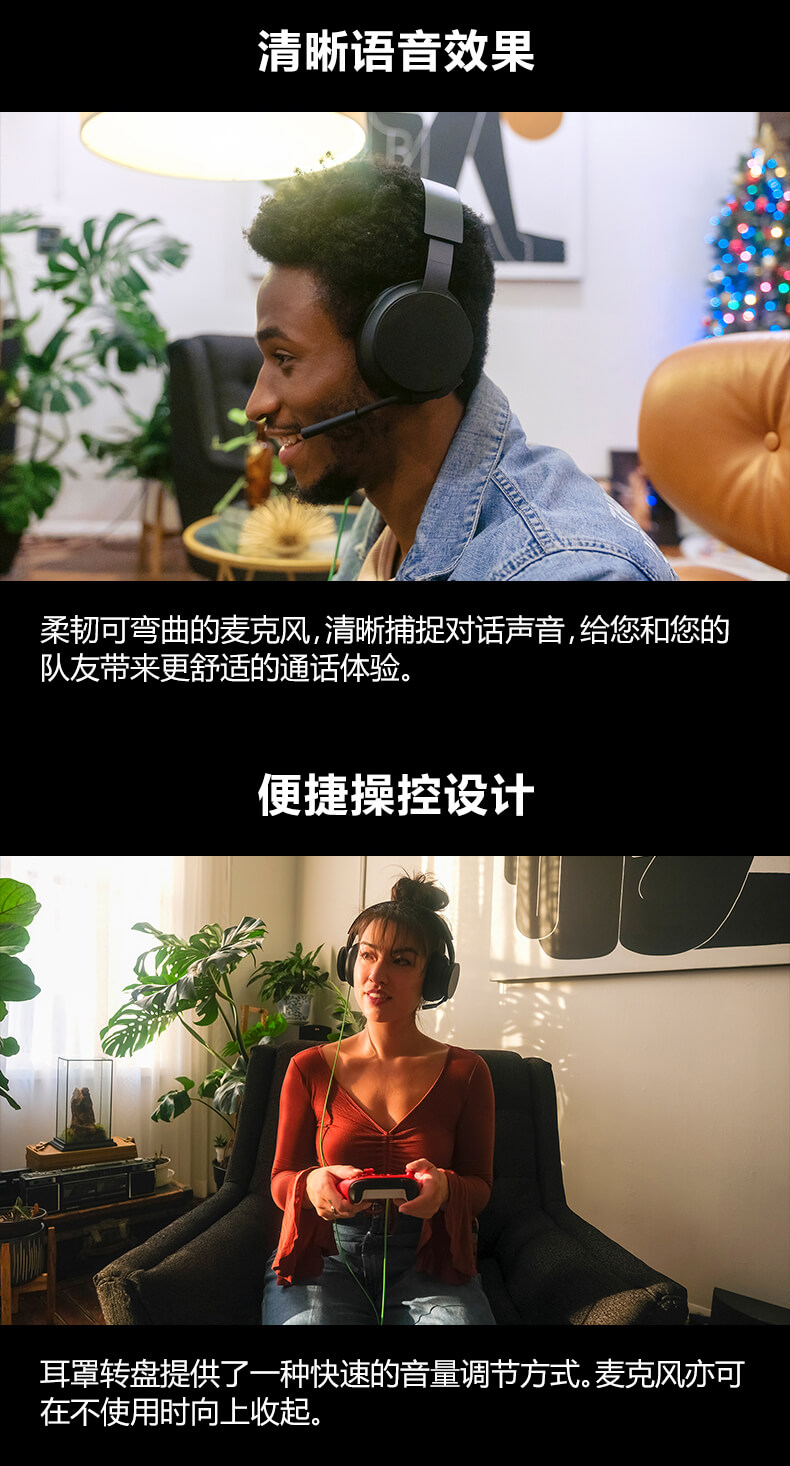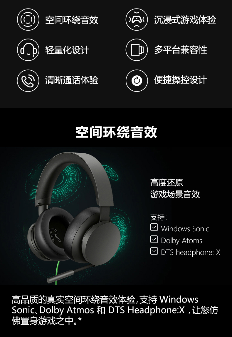 使用 Xbox 立体声耳机,享受清晰响亮的游戏音效,支持高保真 Windows Sonic 空间音效和清晰语音。灵活轻便的设计让您的长时间的游戏中获得舒适体验。