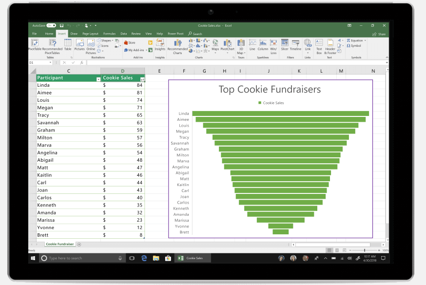 Office 2019 Excel 提供更出色的缩放功能、全新的图表类型,旨在利用数据发现洞见、趋势和机会的更多元素来丰富演示。此外,可视化图表类型 TimeLine 可以帮助你跟随时间的线性演进,按时间顺序展示一系列事件。