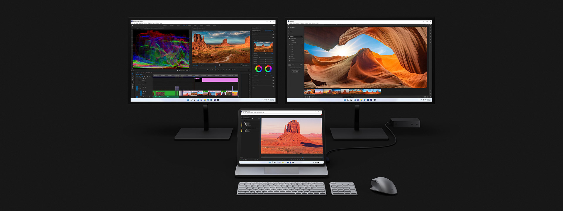 无论是外接显示器还是专用配件,轻轻一插即可使用。得益于支持 Thunderbolt™ 4 技术的 USB 4.0 端口,Surface Laptop Studio 能够快速响应并适应您的需求。