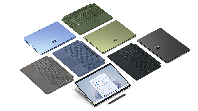Surface Pro:新一代 Surface Pro 9 于2022年10月12日发布的全新平板笔记本二合一。微软 Surface 系列兼顾工作室和平板电脑的通用性。它拥有惊艳的高对比度、低炫光显示屏,大内存,高速处理器,并且预装 Windows 11 操作系统,更有着时尚、纤薄、便携的外观。选择 Surface Pro,它能够与 Surface 触控笔、Surface Dial 和 Office 默契协作,还提供完整的 Windows 体验,包括 3D 制作工具。