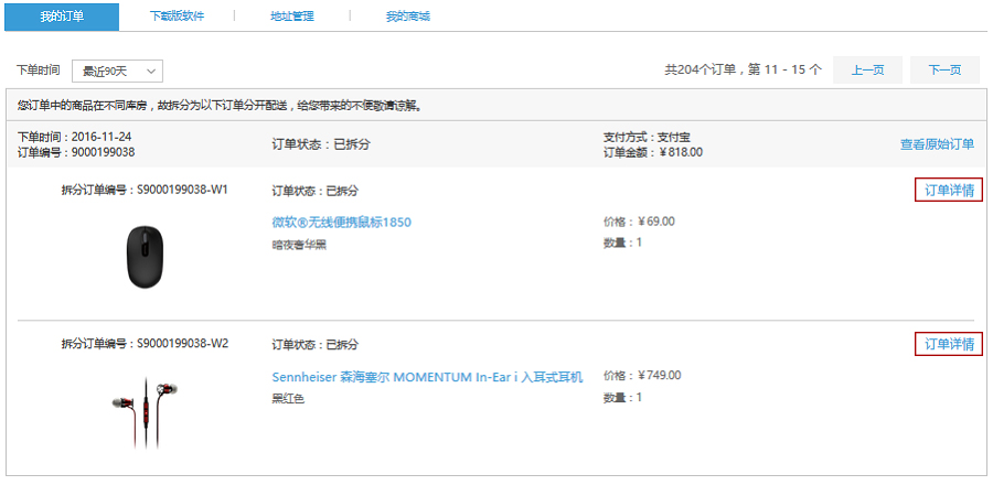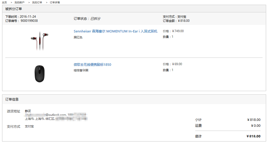 如您订单中的商品分别存储于不同的库房(即包含第三方发货商品),则订单成功付款后,将根据商品所在库房被自动拆分。每个拆分订单将为您单独运送,可在“订单详情”中追踪其物流信息。