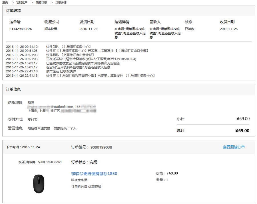 1. 如您订单中的商品分储于不同的库房(即包含第三方发货商品),则订单成功付款后,将被自动拆分。拆分后,在“我的订单”页面点击“订单详情”,即可查看对应拆分订单的详情,其中即包含该拆分订单的物流信息。