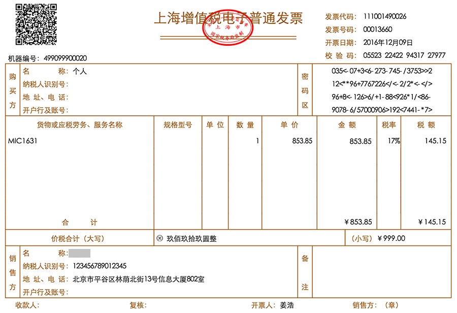 国内各省、自治区、直辖市内订单均可开具电子发票(港澳台除外)。