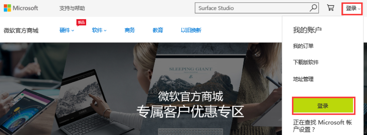 通过邀请邮件,前往专属客户优惠专区。并以Microsoft 账户登录官方商城。