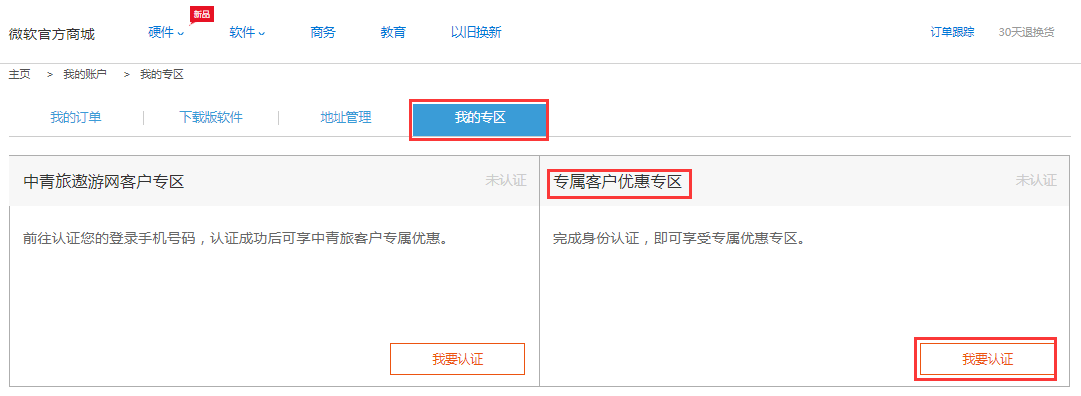 4. 认证状态由“未认证”变为“已认证”,认证成功。点击“前往专属客户优惠专区” 开始享受优惠。